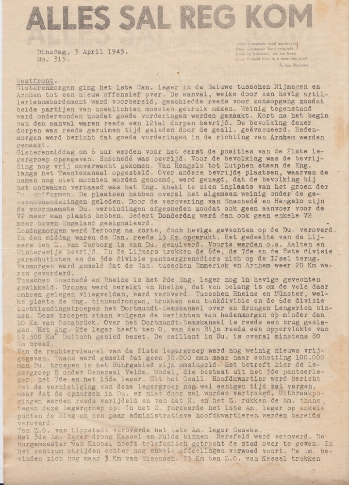 De Ploeg Nummer 13, Juni 1945.