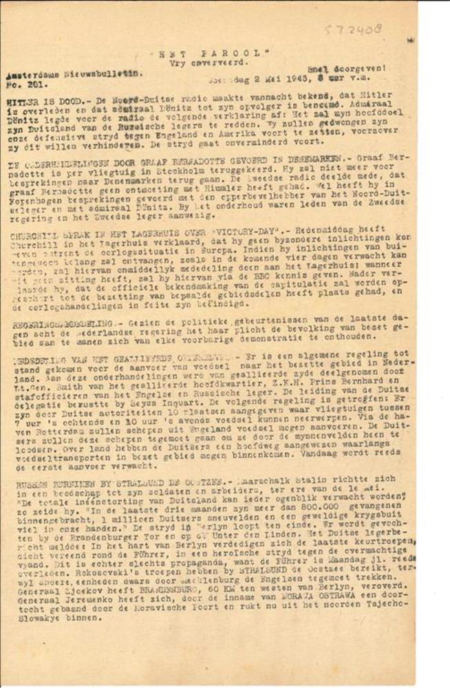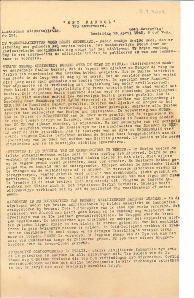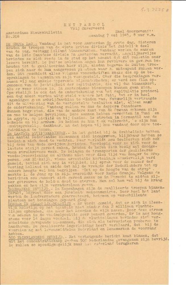 V.N. Nieuws, Speciaal Bulletin, No. 33, Maandag 13 N...