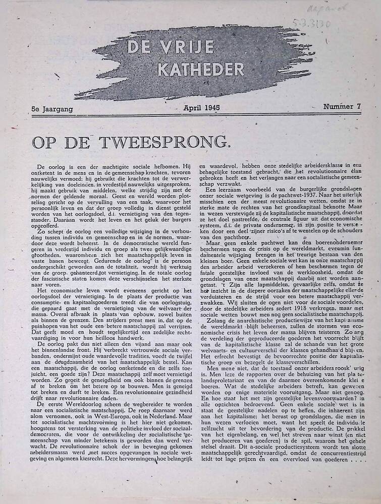De Vrije Katheder ( Orgaan der Nederlandse studenten...
