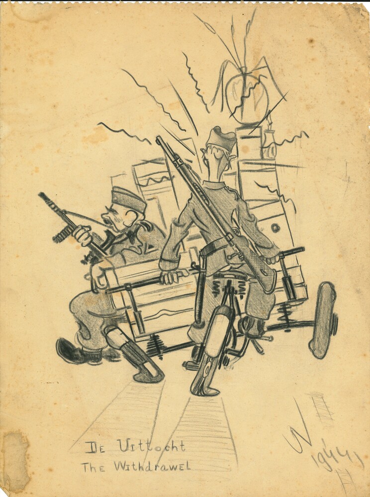 De uittocht, tekening van J. Nieuwenhuys, 1944.