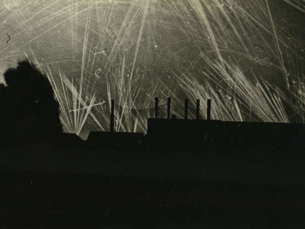 Foto van nachtelijk luchtdoelvuur. Tekst: "Battle of...