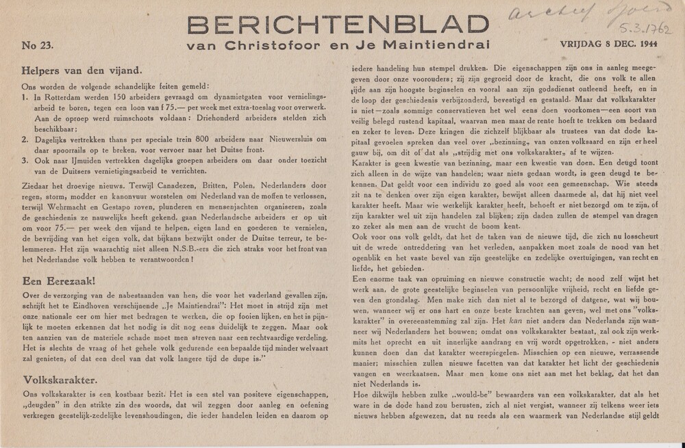 Berichtenblad van Christofoor en Je Maintiendrai. No...