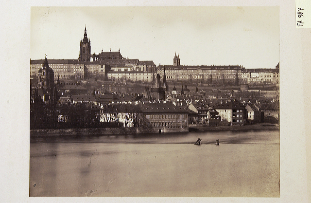 Gezicht op Praag vanaf de overkant van de Moldau
