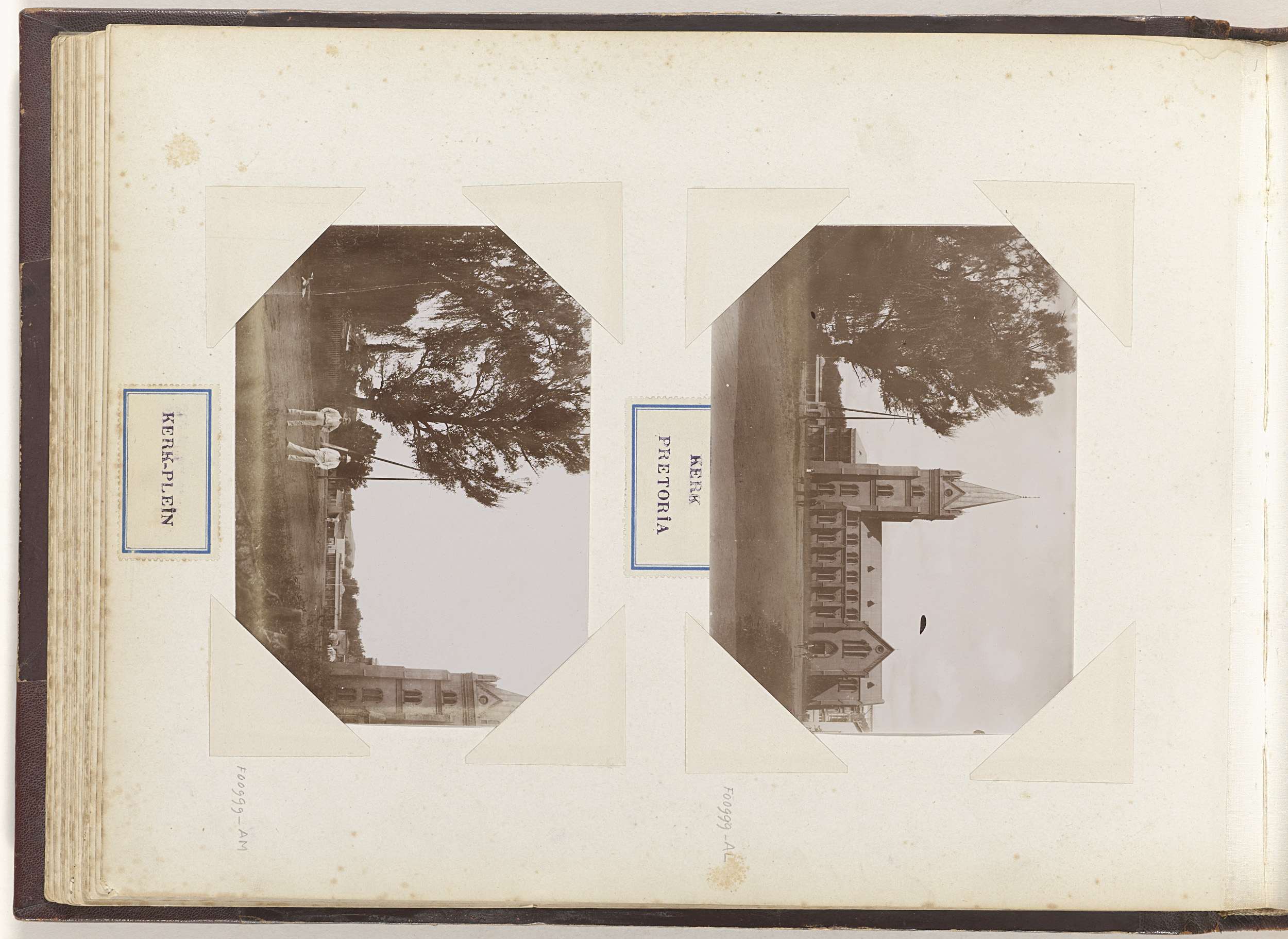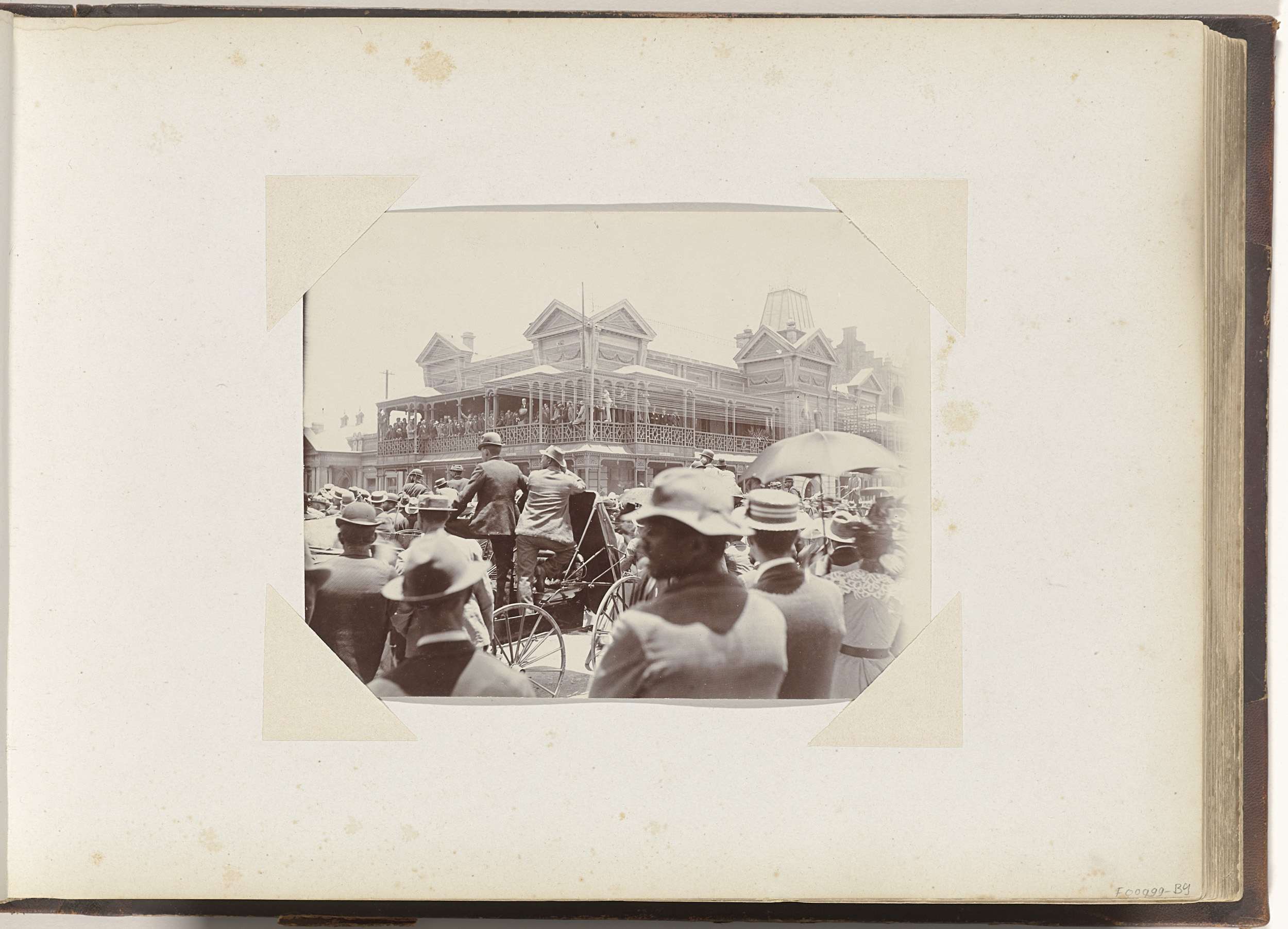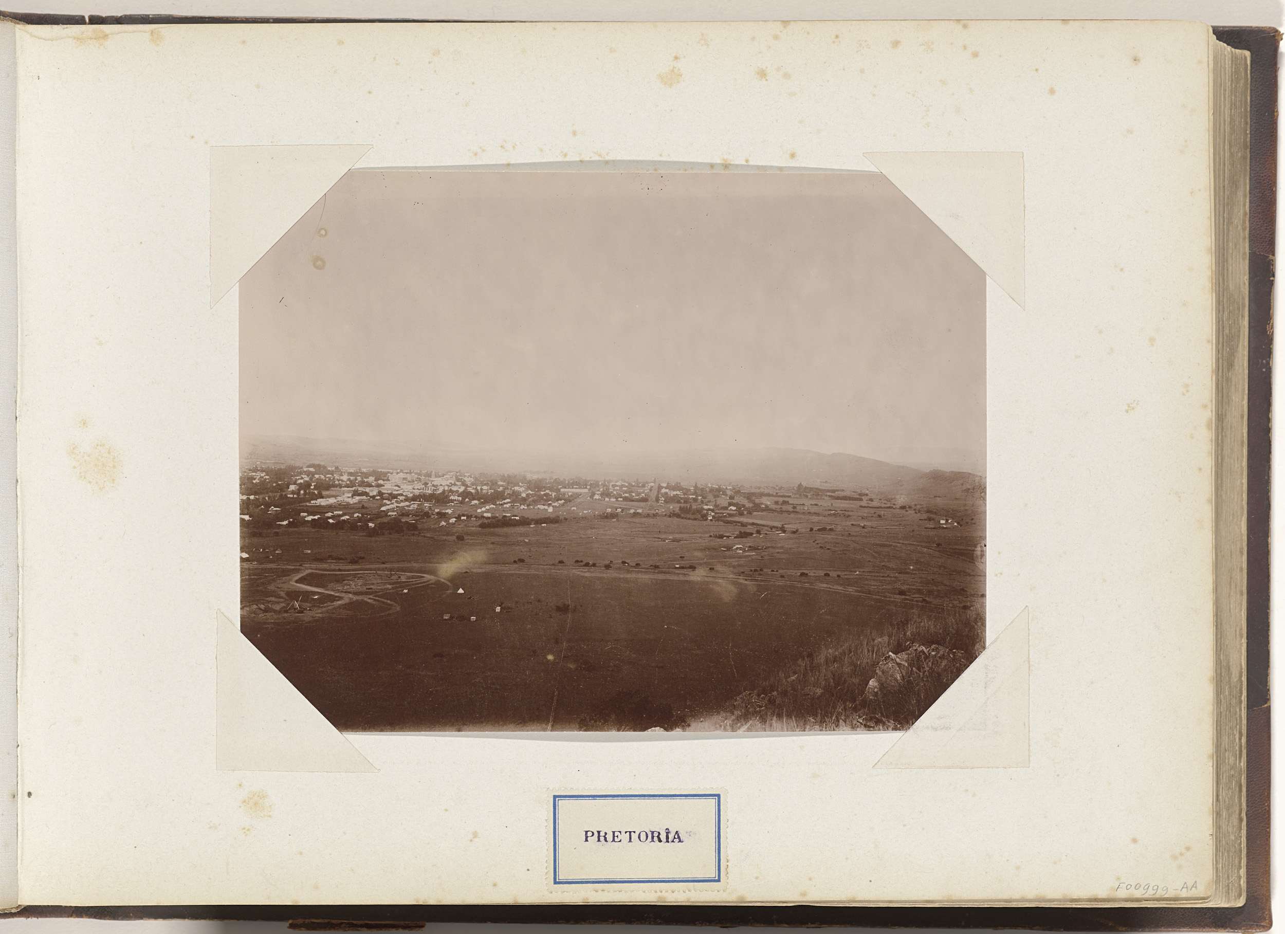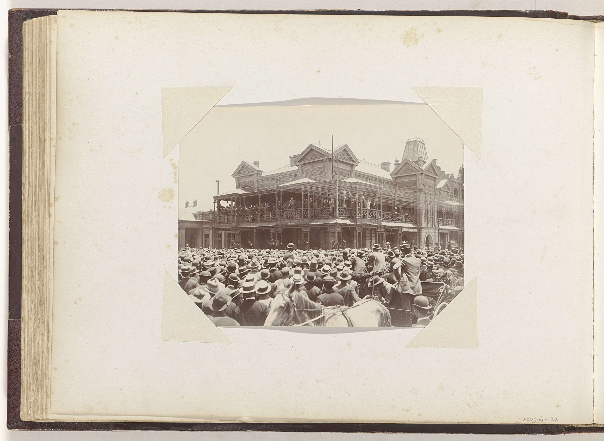 Mensen voor een gebouw, vermoedelijk in Pretoria