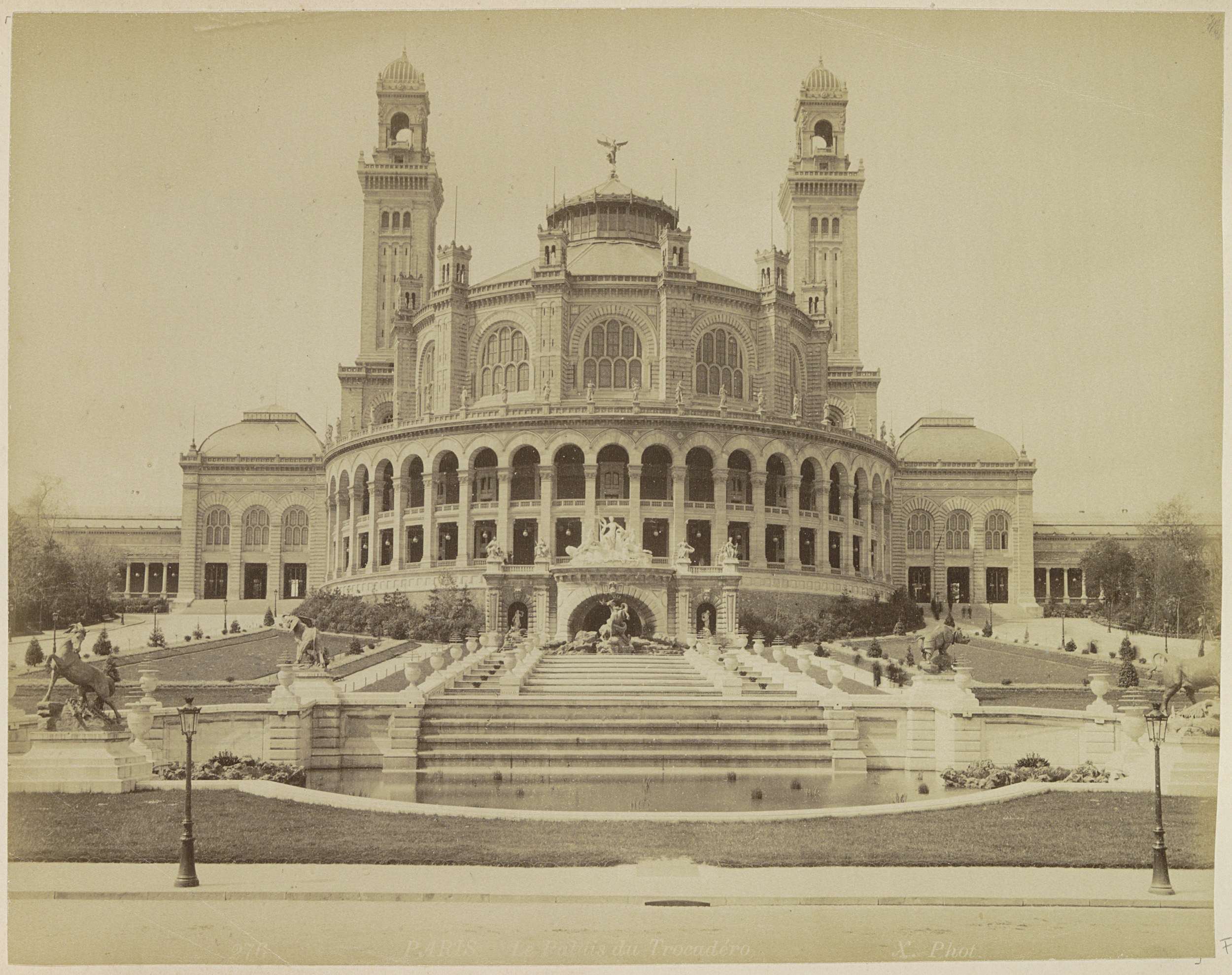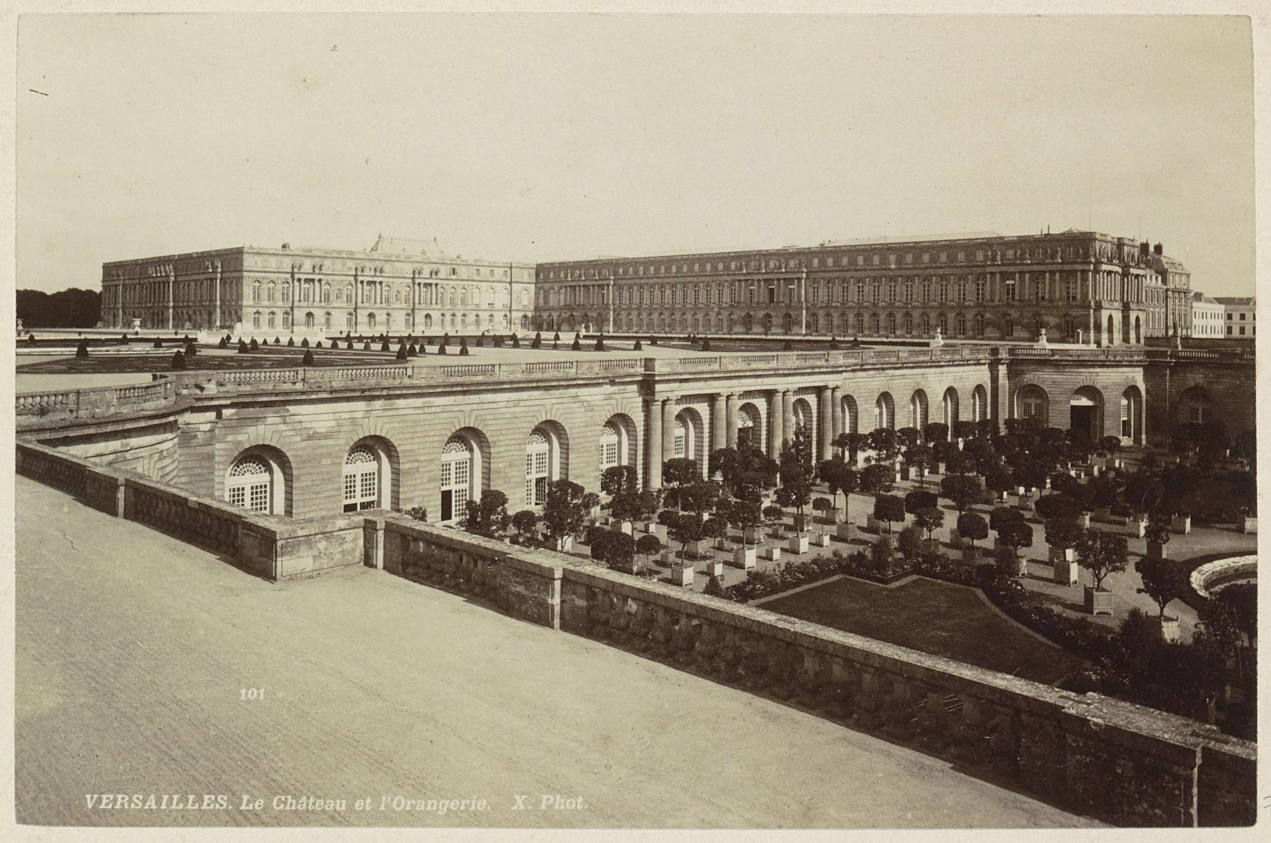 Gezicht op het Paleis van Versailles en op de voorgr...