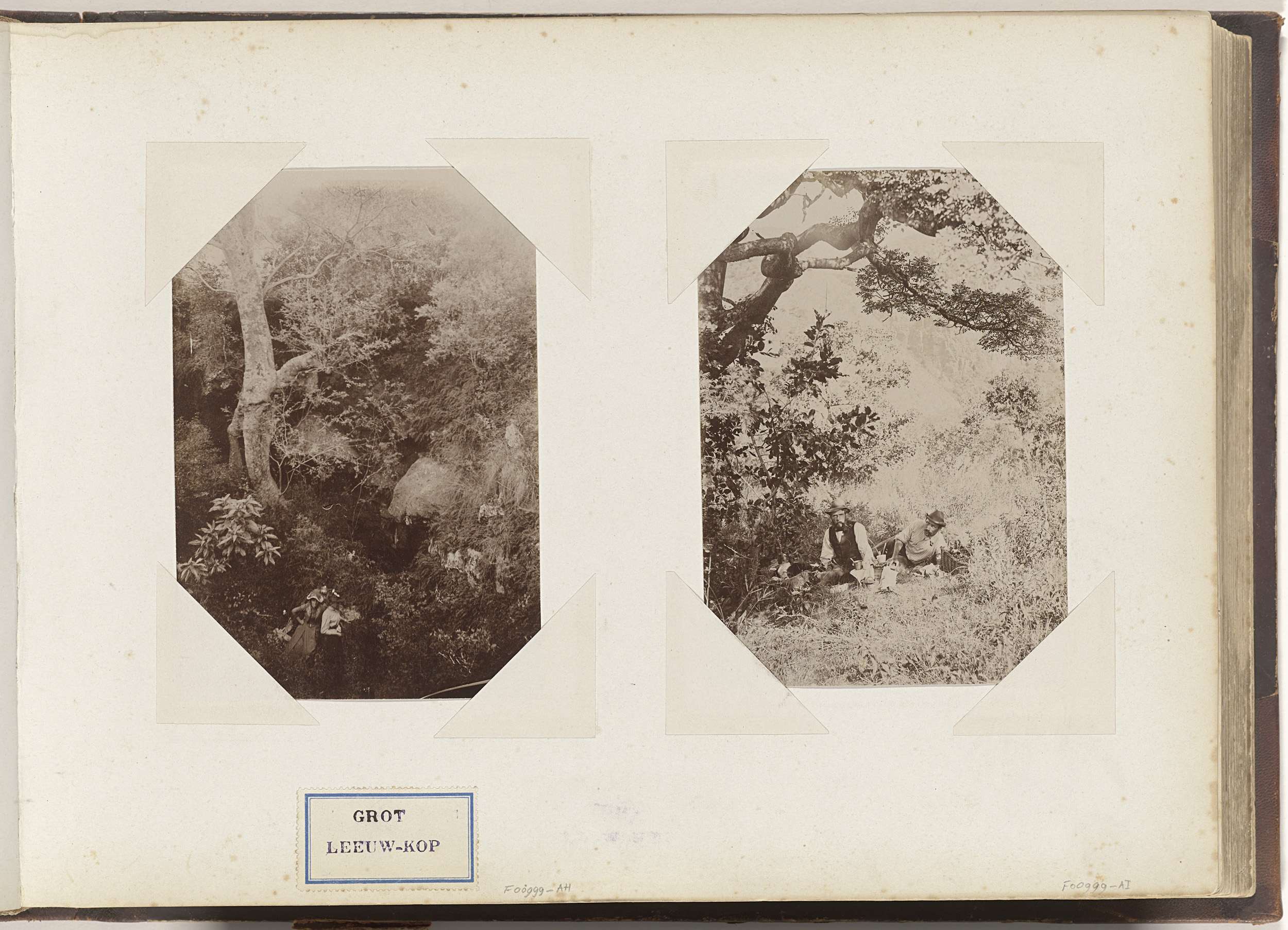 Twee vrouwen bij de Leeuw-Kop-grot in Zuid-Afrika