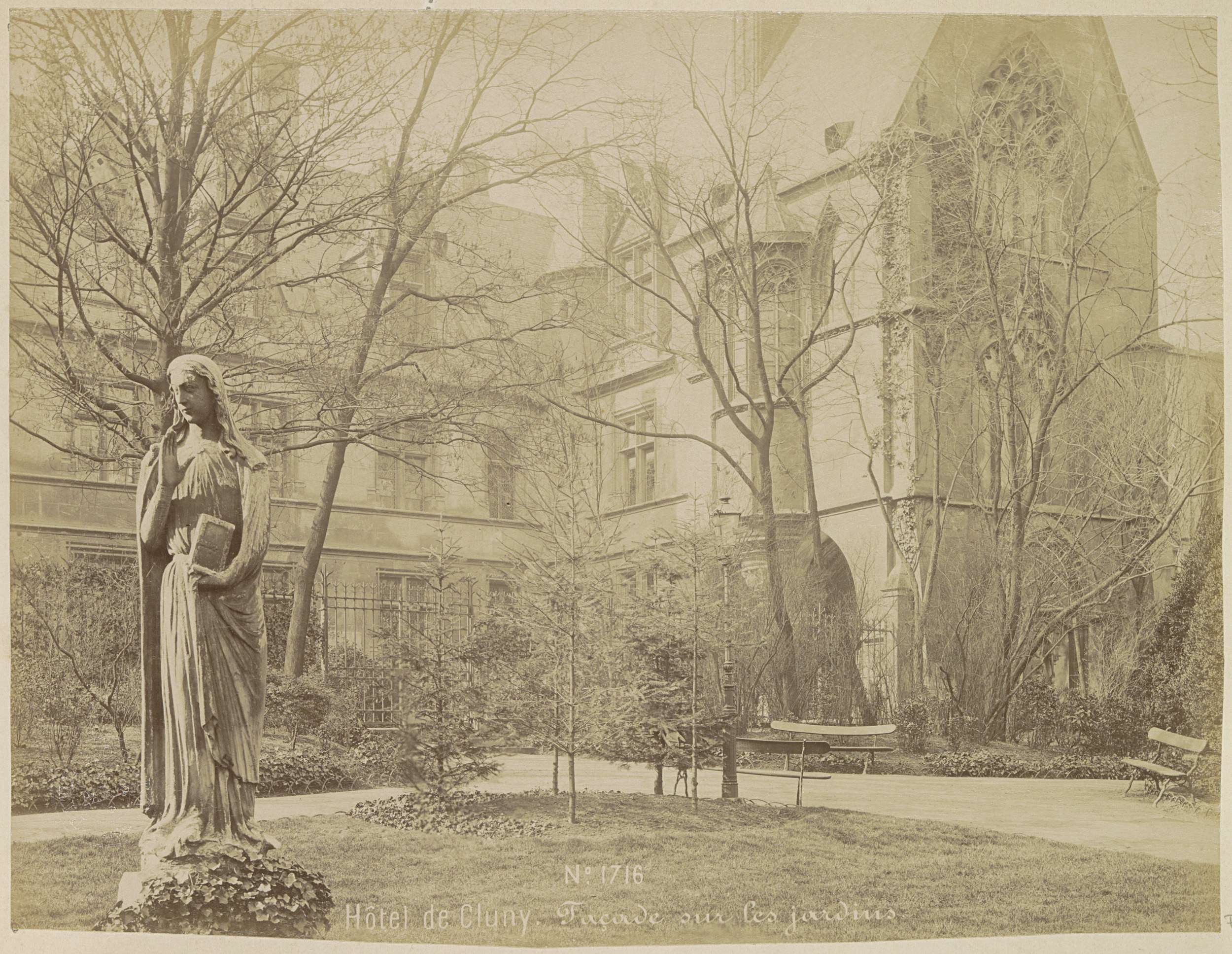 Tuin met beeld in het Hôtel de Cluny in Parijs