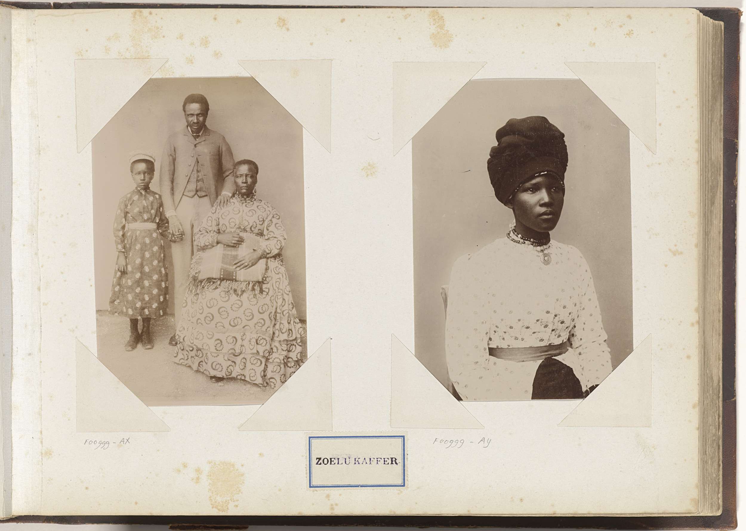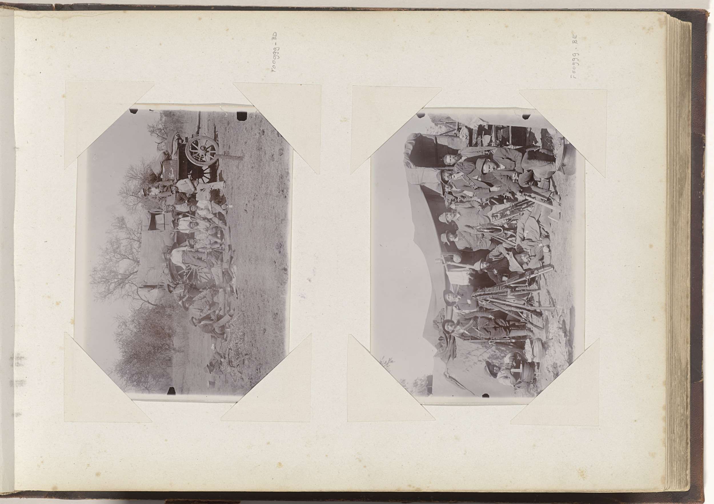 Groep gewapende mannen voor een huifkar in Zuid-Afrika