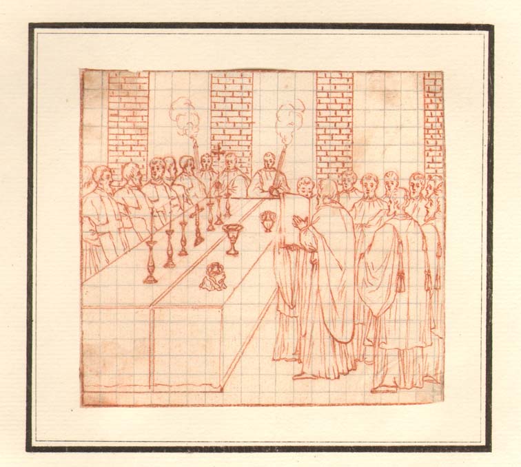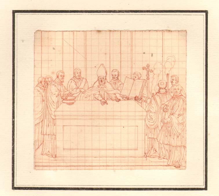 Bisschop zegent vaten die bij gebruik van het altaar...
