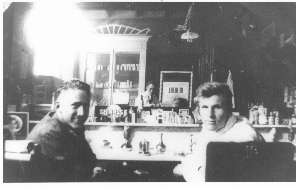 L=Wim Lentjes. R= Bertus Kuning, in de kapperszaak v...