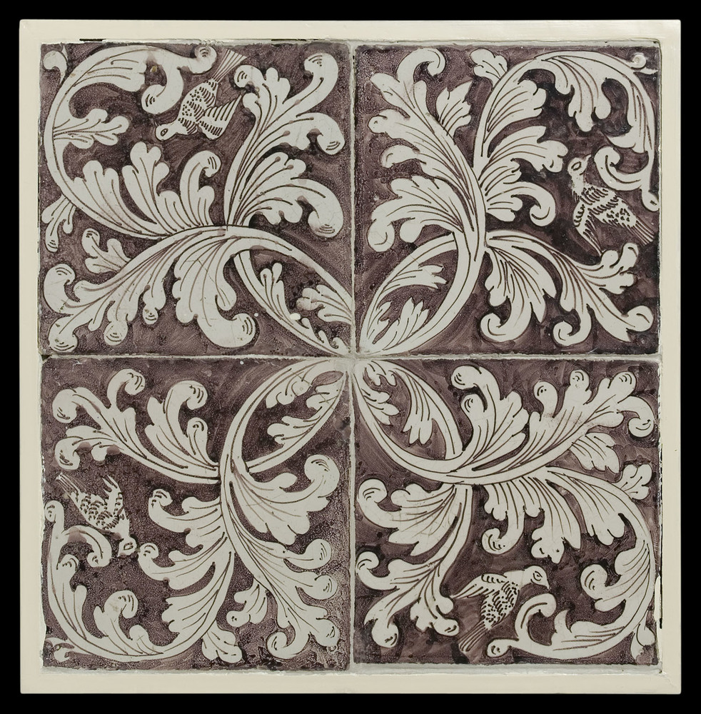 Tegelveld bestaande uit vier tegels van keramiek met...