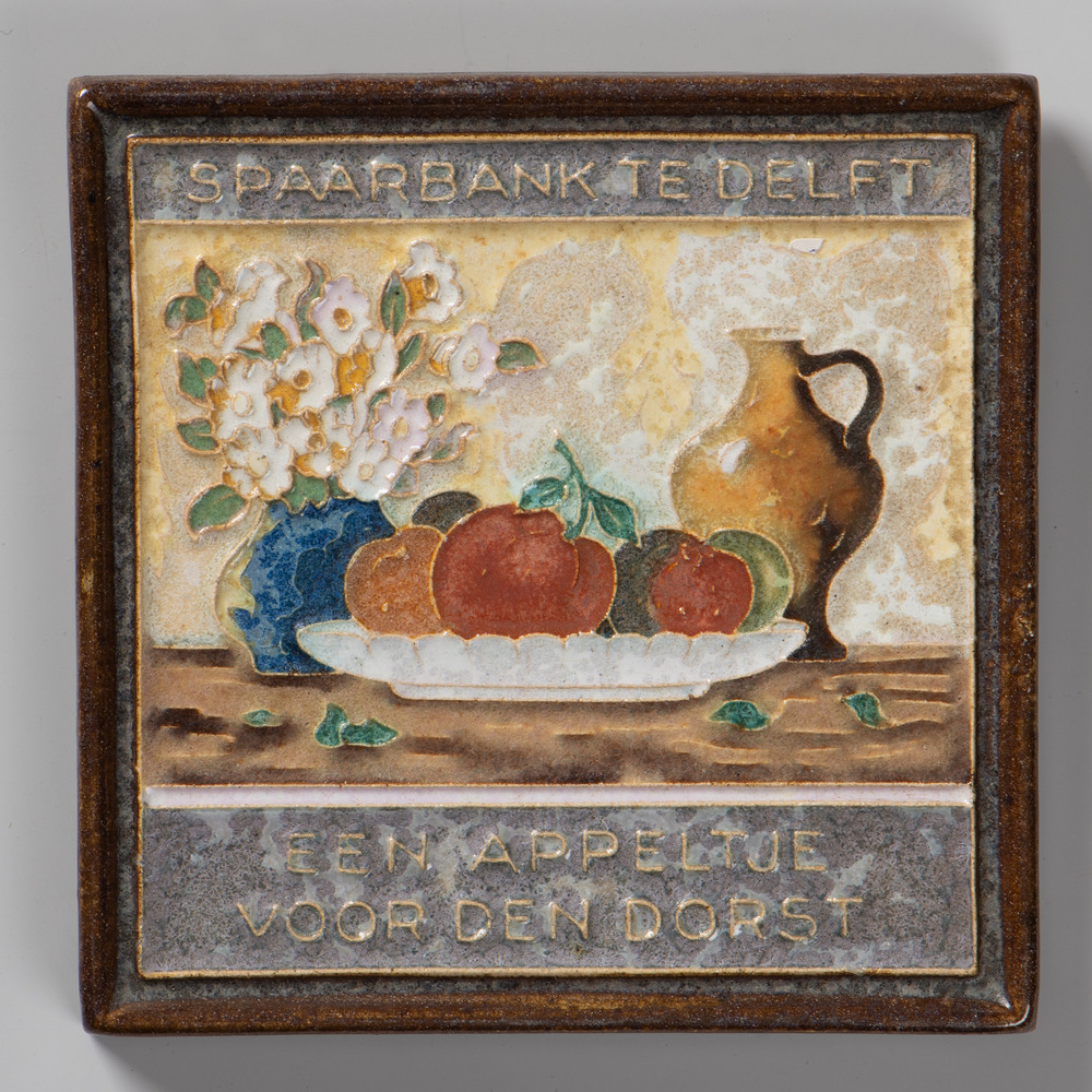 tegel van keramiek met tinglazuur, voorstellende: vo...
