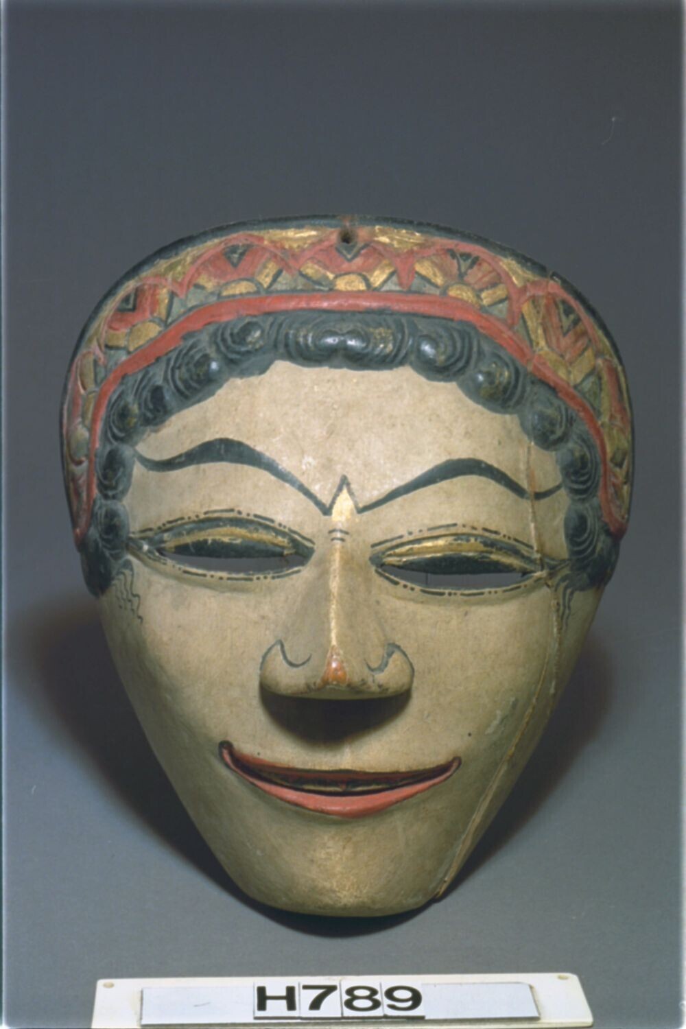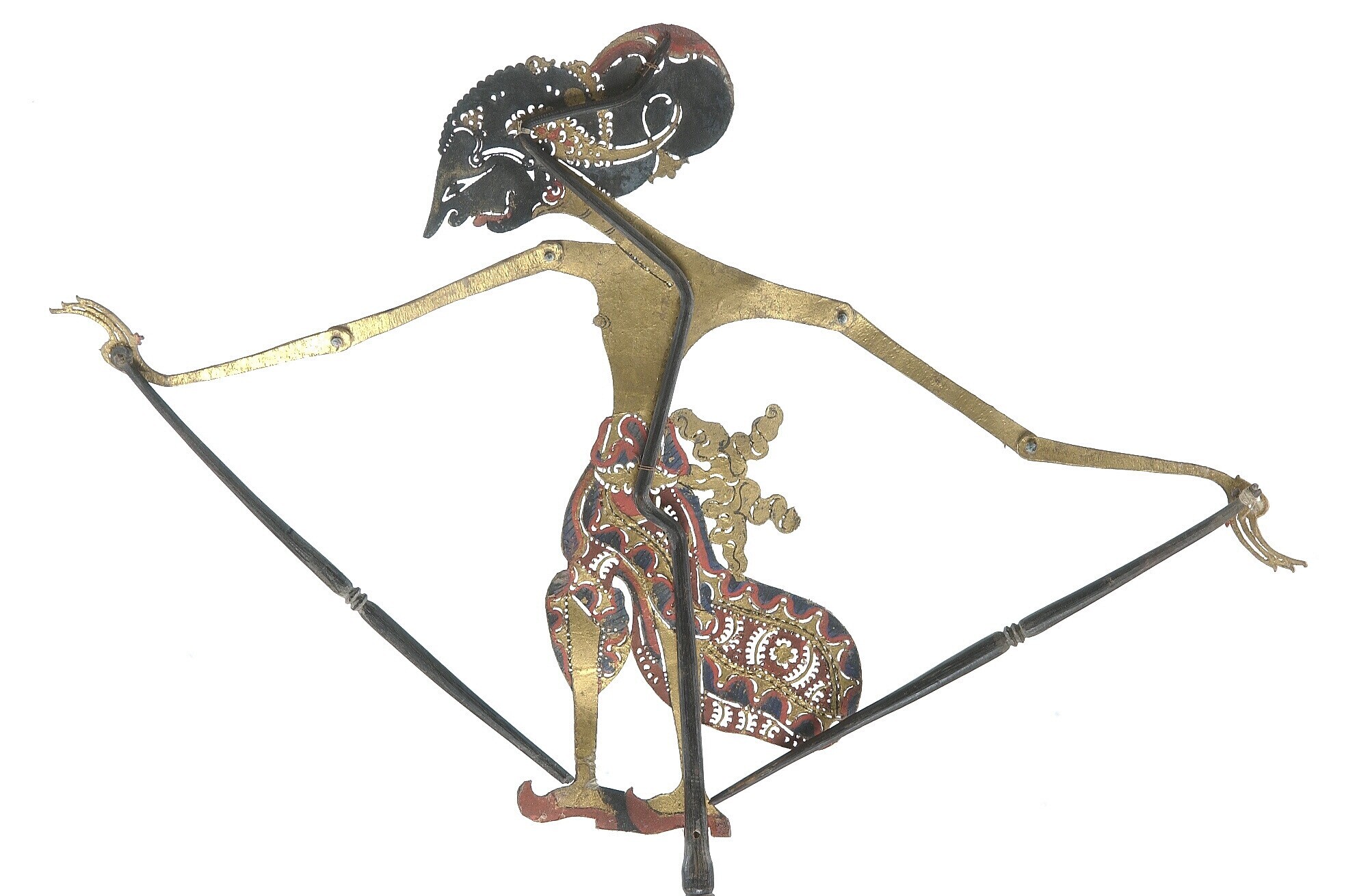 Gesnlen en beschilderd beeld van een wajangfiguur