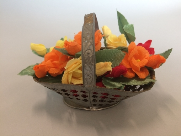 Fruitmandje, onderdeel van doos met tinnen poppenmeu...