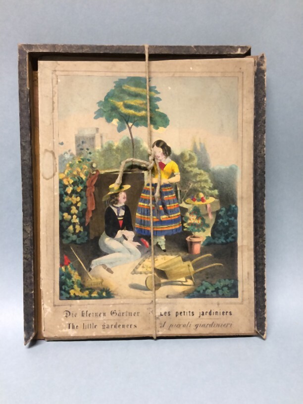 Legpuzzel, genaamd Die Kleinen Gärtner, in houten doos