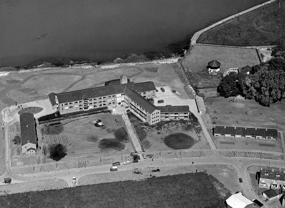 Prentbriefkaart, getiteld 'Nieuwe Kazerne Harderwijk'