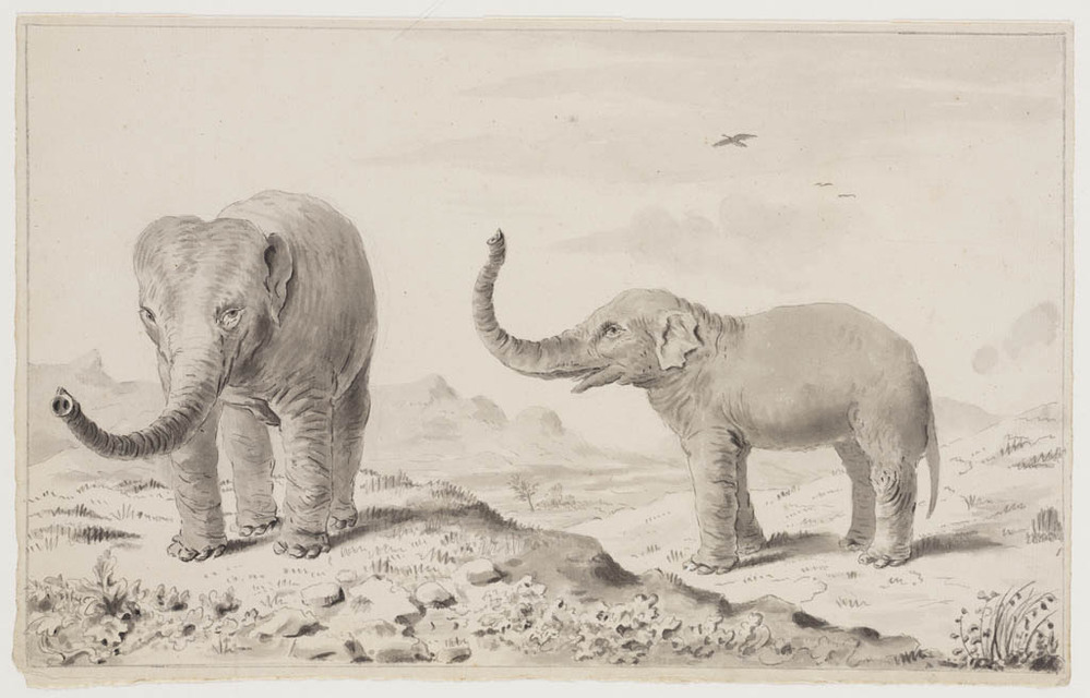 Twee olifanten in een kaal berglandschap