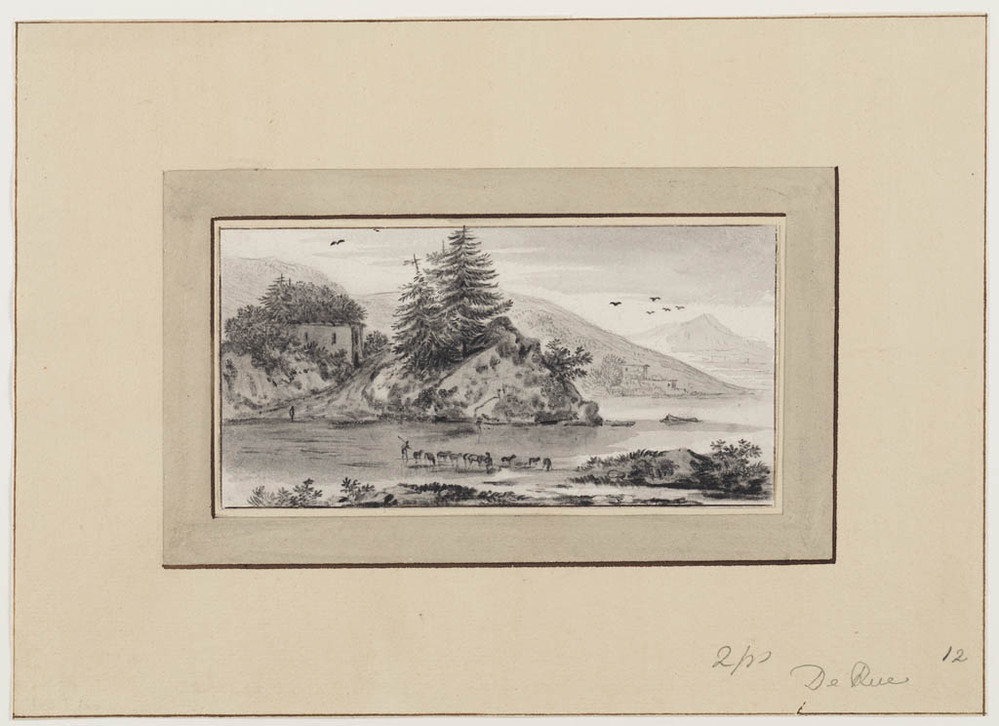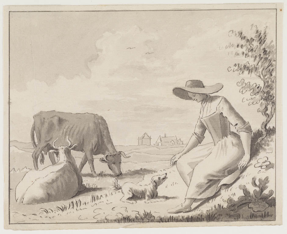 Landschap met zittende vrouw en vee
