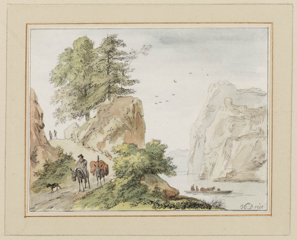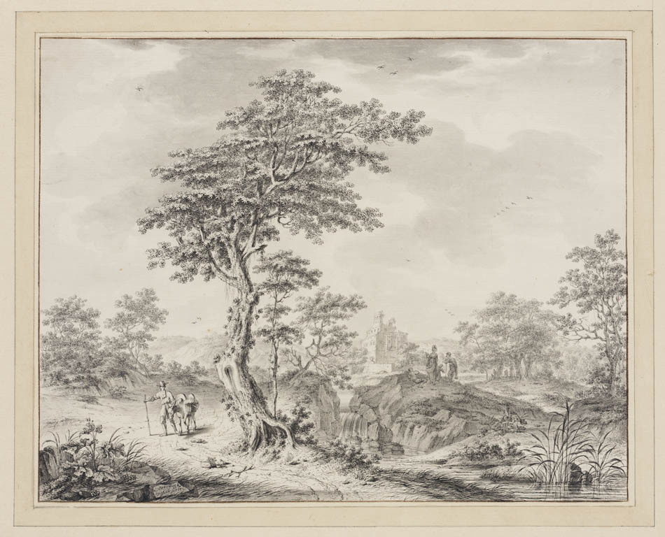 Landschap met beek en figuren