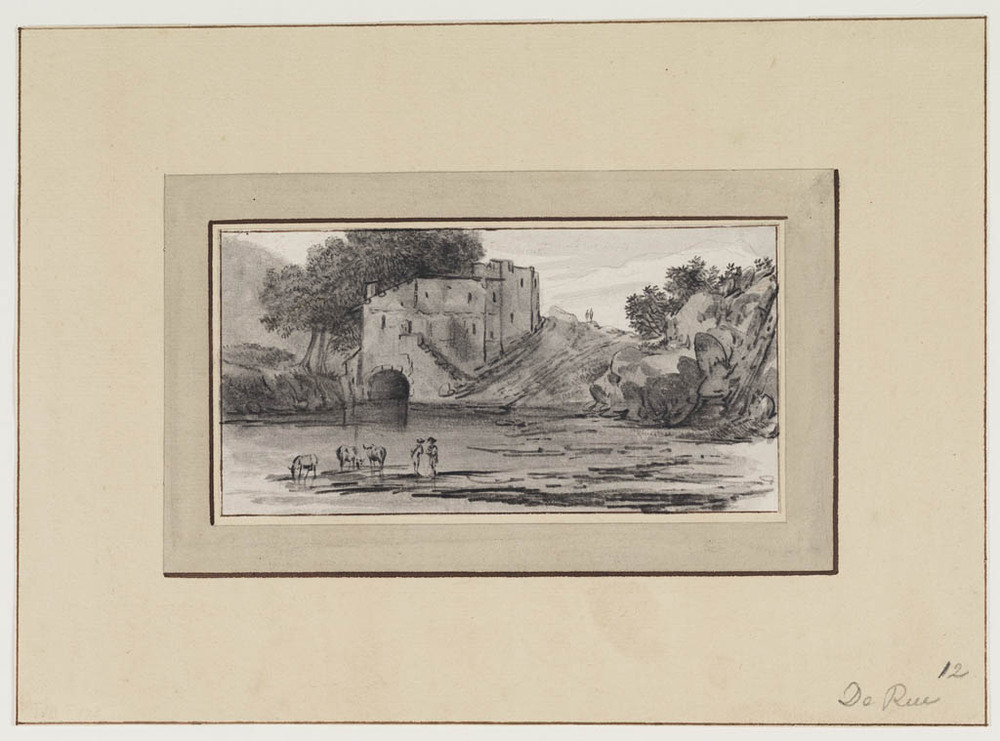 Landschap met ruïne en herders