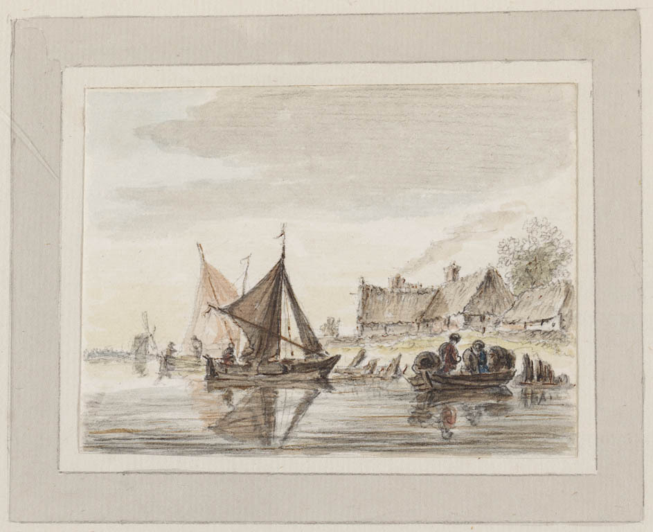Roeiboot en zeilboot bij een boerderij