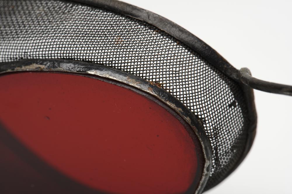 Spoorwegbril met roodgetinte glazen