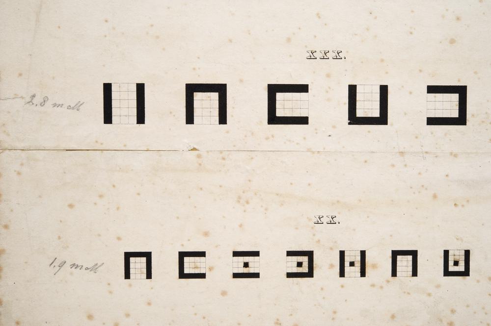 Eerste proef met kwadraten van Snellen