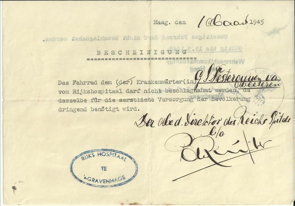 Bescheinigung op naam van Westerouen van Meeteren Ge...