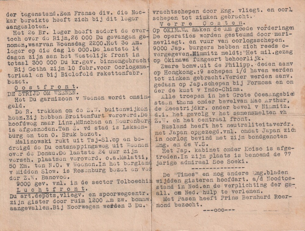 Dagelijksche nieuwsuitgave "Trouw" 6 april 1945