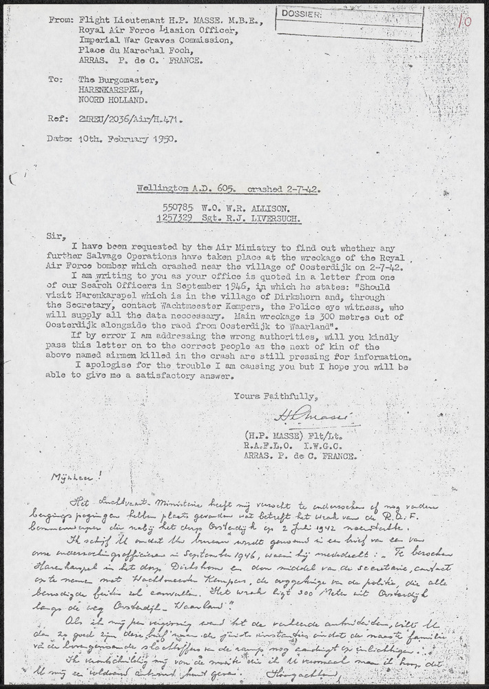 Royal Air Force Liasion Officer, Imperial War Graves...