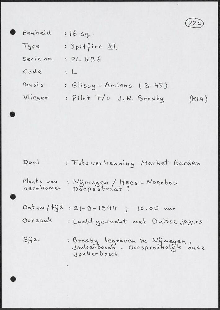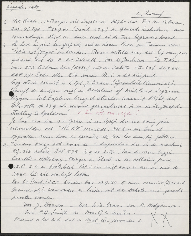 Notities betreffende gesneuvelde militairen
