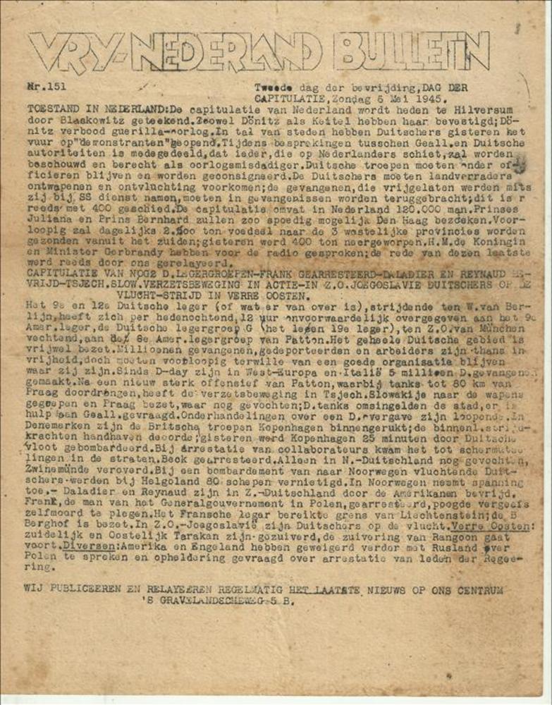 Vrij Nederland Bulletin Nr 151, 6 mei 1945