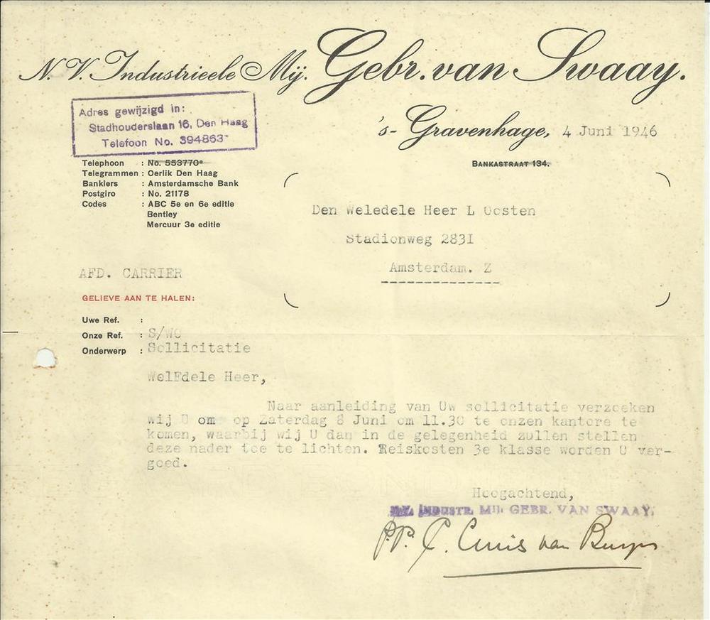 N.V. Industrieele Mij. Gebr. van Swaay te Den Haag -...
