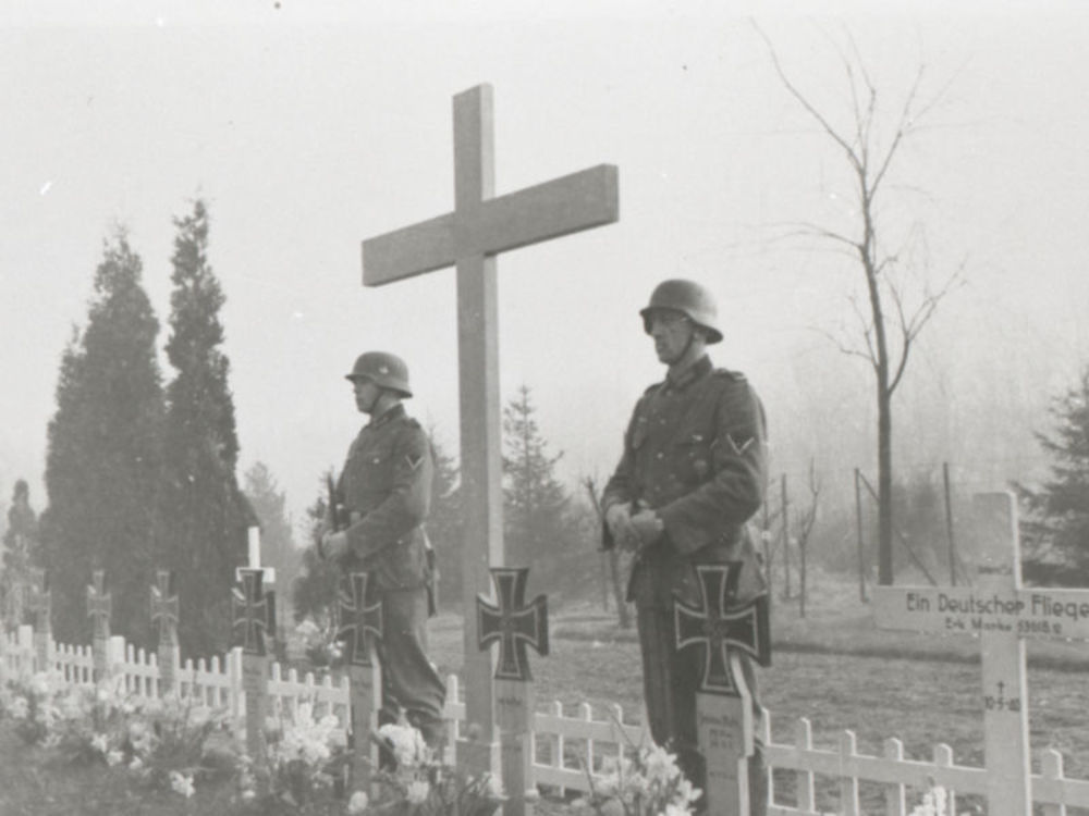 Foto van twee met propeller versierde graven.