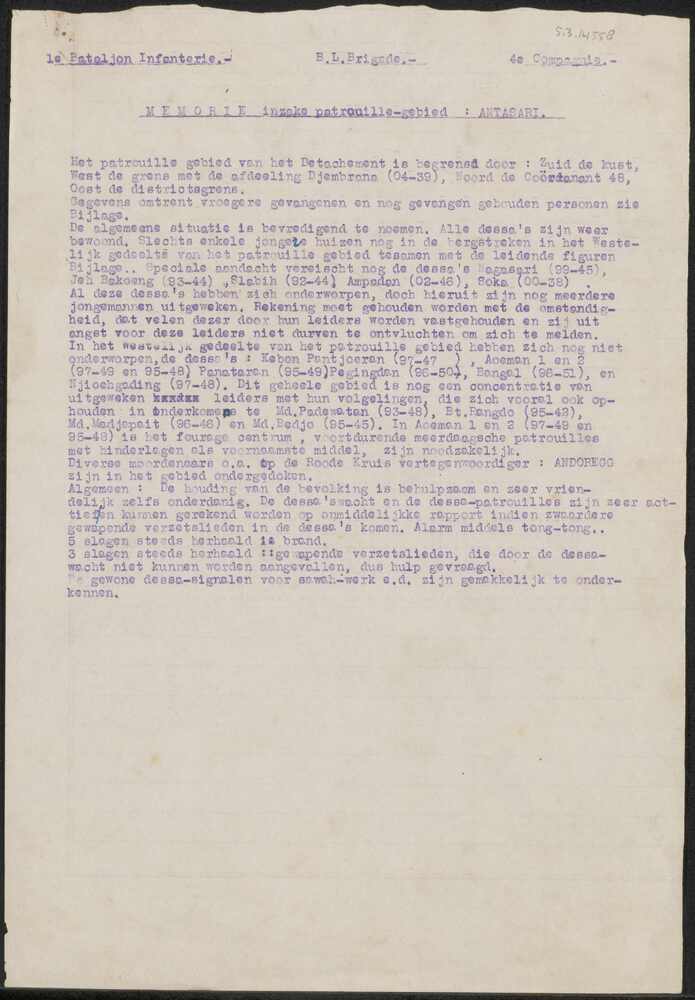 1e Bataljon Infanterie, 4e Compagnie, B.L. Brigade, ...
