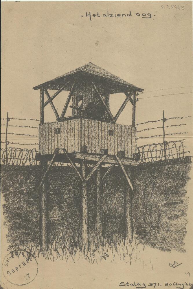 Tekening:"Het alziend oog". Stalag 371. 30 aug '42