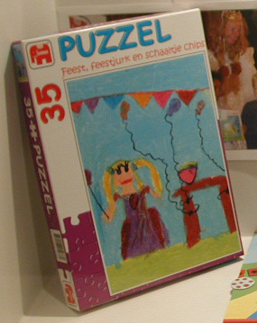 Legpuzzel, Feest, feestjurk en schaaltje chips