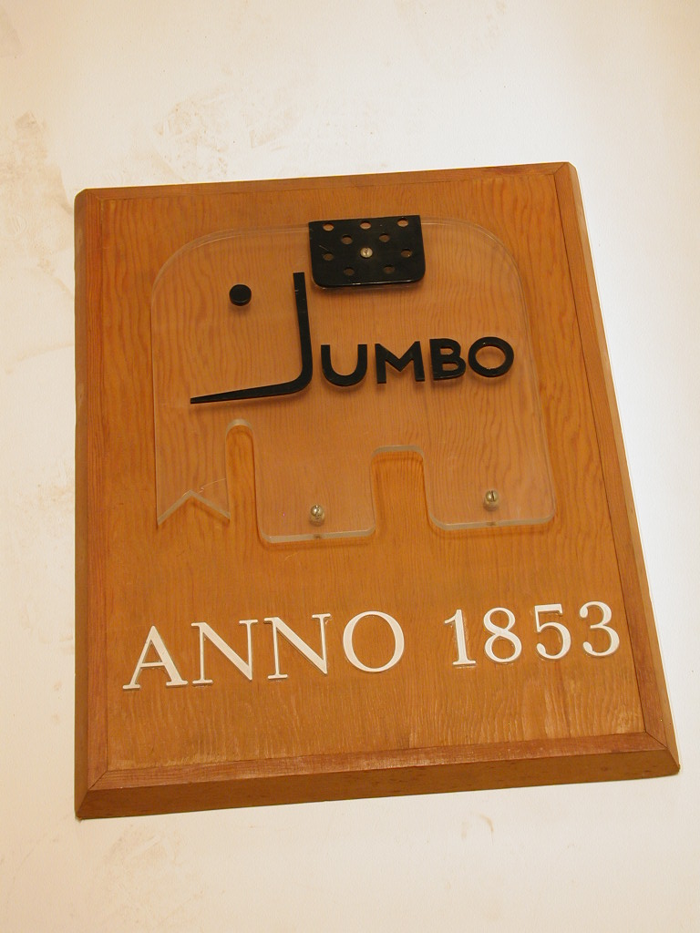 Wandbord met Jumbo-olifant, opschrift: JUMBO/ ANNO 1...