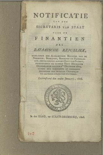 Notificatie heffing regt van patent, 1806