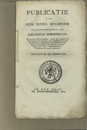 Publicatie accijnzen op drank, 1806
