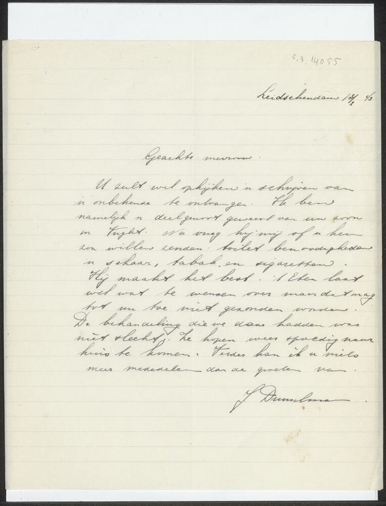 Brief aan de ouders van Cees van den Bergh, J. Dunsc...