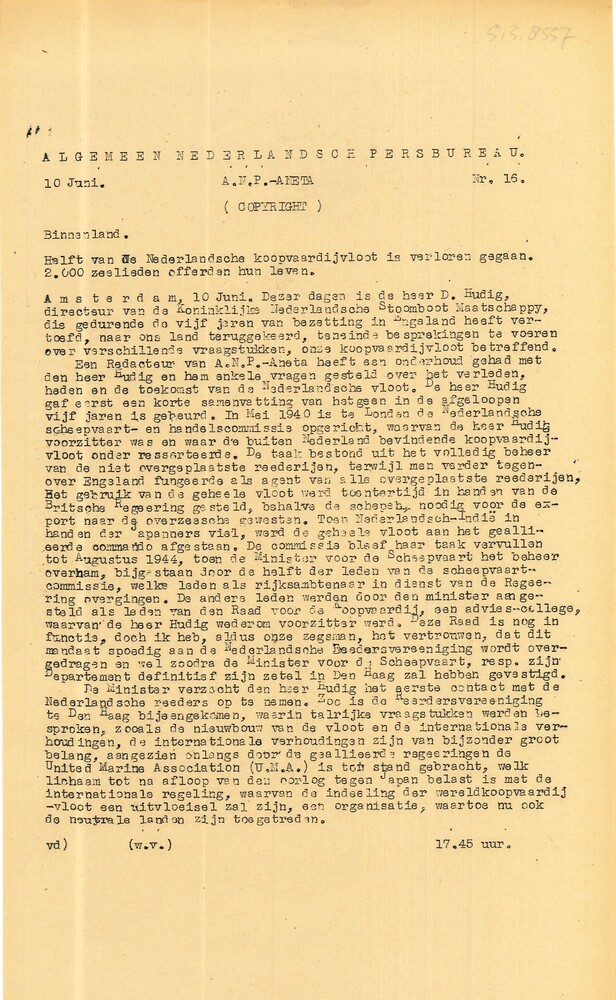 Vel: Algemeen Nederlandsch Persbureau, mededelingen,...