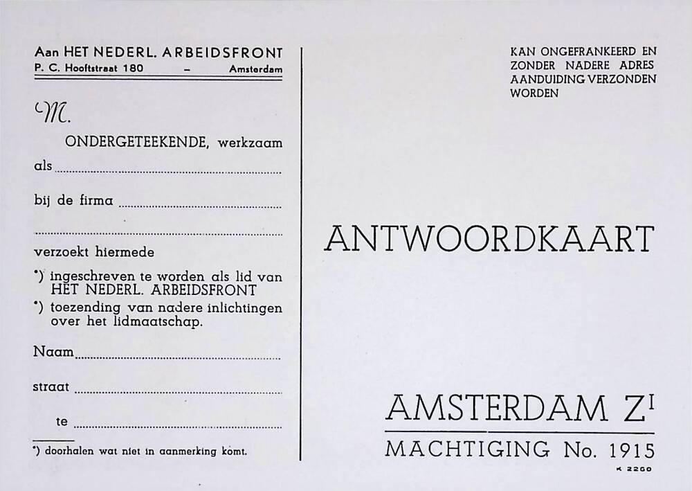 Brochure: Arbeidsfront roept!