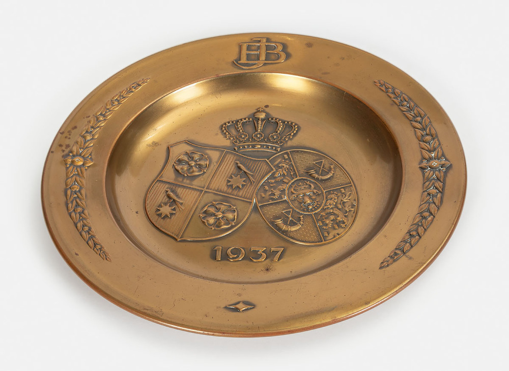 Metalen bord bronskleurig.