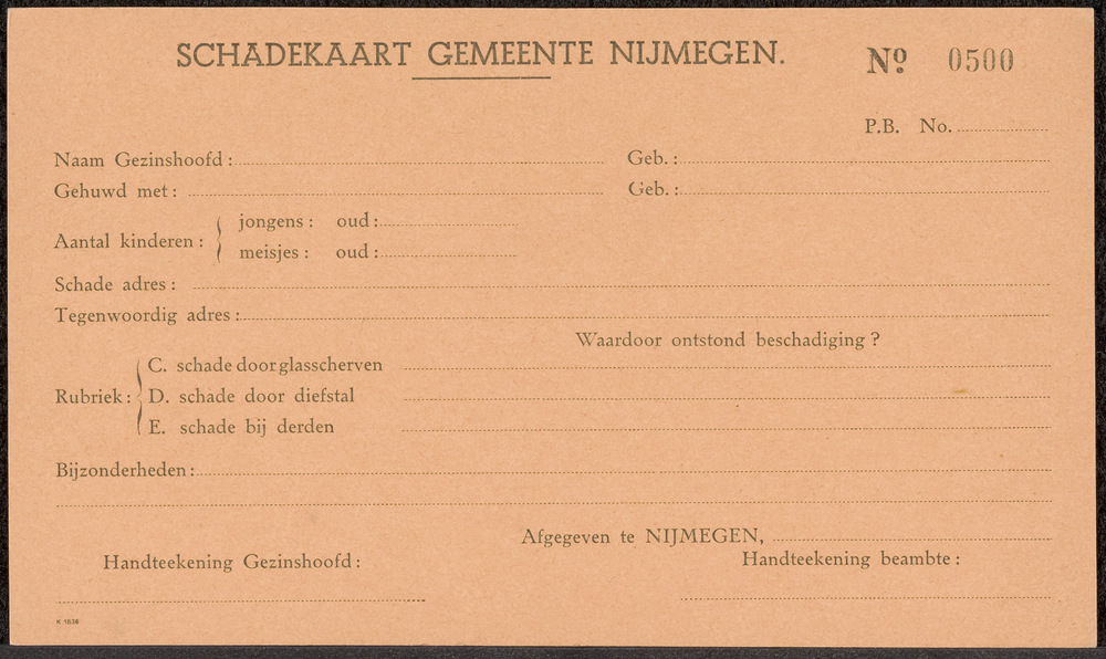 Schadekaart Gemeente Nijmegen, no 0500.
