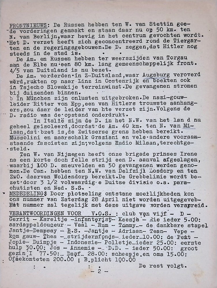 De Nieuwsbode, no. 105, 29 april 1945