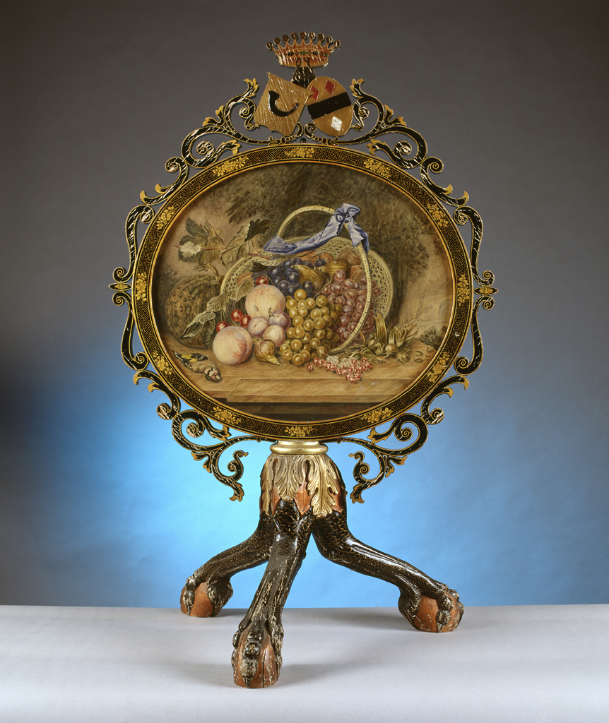 Haardscherm met vruchtstilleven en alliantiewapen Va...