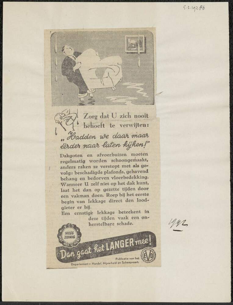 Vel met opgeplakte advertentie: "Zorg dat u zich noo...
