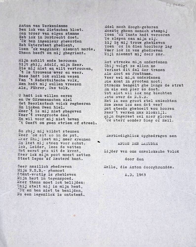 Vel met getypte tekst: "Anton van Werkendamme, ben i...