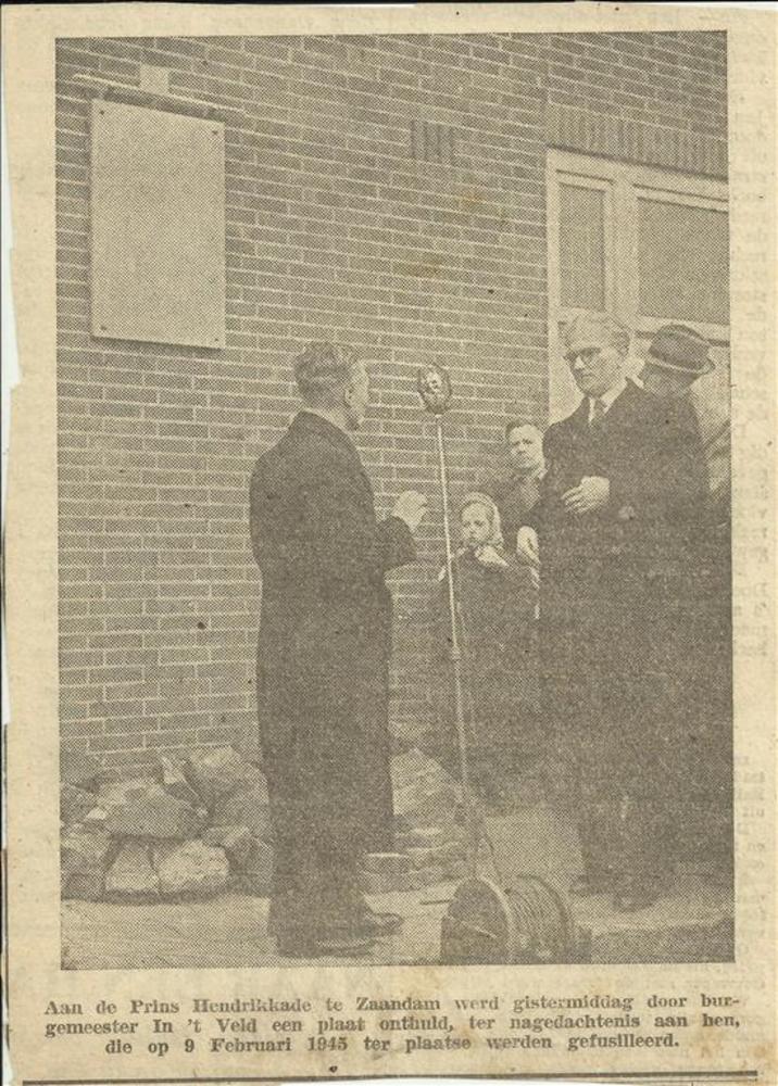 Onthulling van een plaat aan de Prins Hendrikkade te...